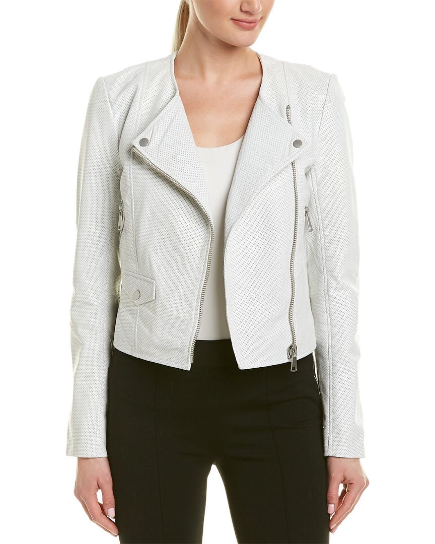Bagatelle Perforated Leather Moto Jacket In Chalk White Lyst